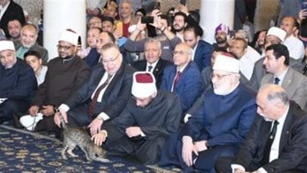 لقطة إنسانية.. الأزهري يلاطف قطة في احتفال الأوقاف بذكرى فتح مكة|صور