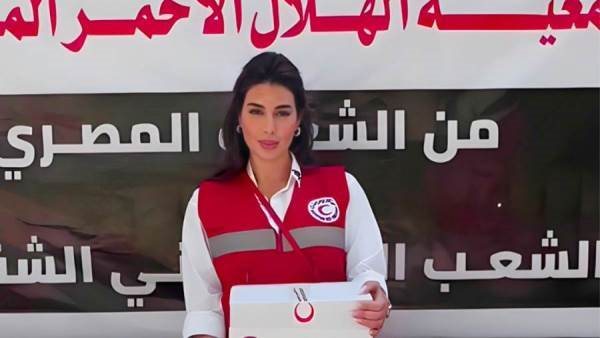 تجمع المساعدات لأهل غزة.. ياسمين صبري أحدث عضو في «الهلال الأحمر»