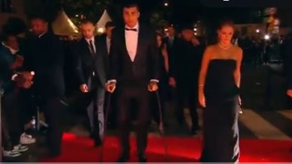 رودرى يصل حفل الكرة الذهبية على عكازين بباريس