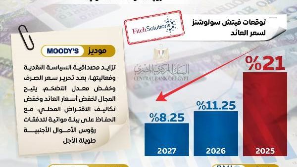 توقعات بخفض البنك المركزي المصري سعر الفائدة 1% في اجتماع الخميس