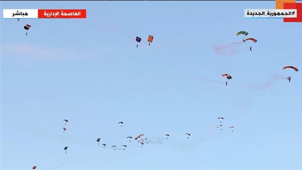 قوات المظلات تقدم عرضًا جويًا للعلم المصري وعلم الإمارات خلال احتفالية تخرج دفعات الكليات العسكرية 2024