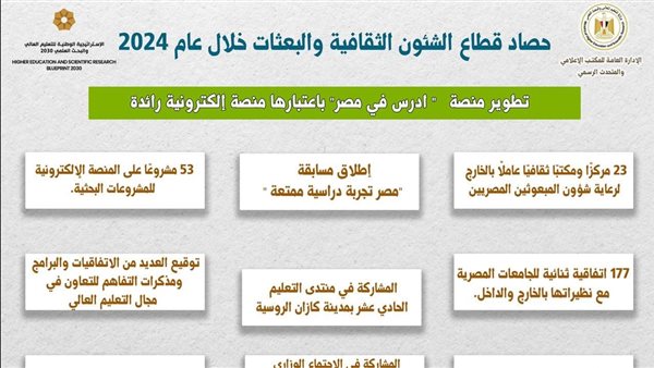 إنجازات التعليم العالي في 2024.. قفزات نوعية في الشؤون الثقافية والبعثات