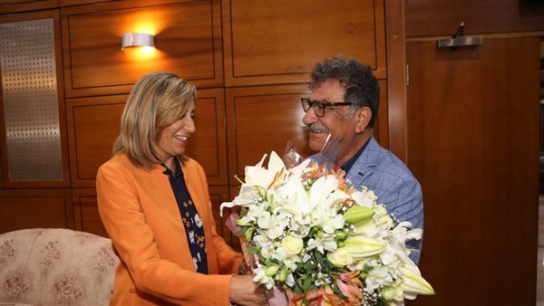 وزيرة الثقافة تستقبل الفنان محمد عبلة بمطار القاهرة عقب حصوله على وسام "جوته" من ألمانيا