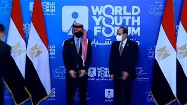 الرئيس السيسي يلتقط صورة تذكارية مع ولي عهد الأردن خلال افتتاح منتدى شباب العالم