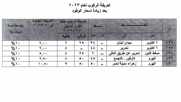 أسعار تعريفة خطوط السرفيس والنقل الجماعي في الجيزة
