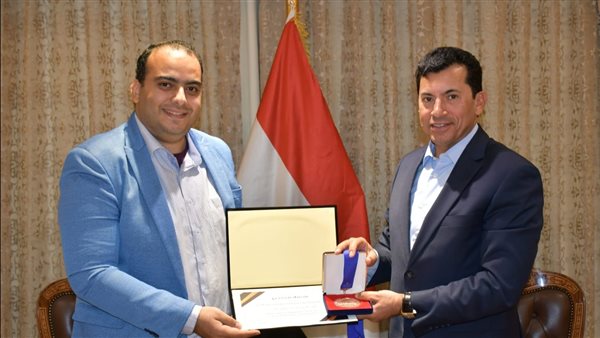 وزير الرياضة يكرم مصطفى السيد بعد حصوله علي جائزة أفضل مخترع في العالم بمجال الطاقة