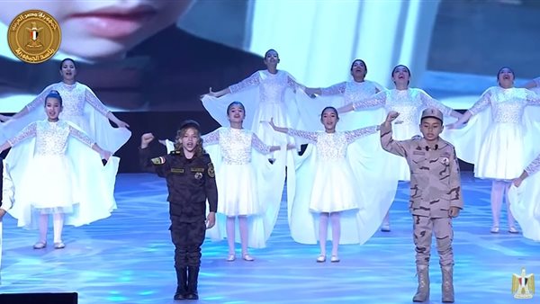 أبناء الشهداء يقدمون فقرة غنائية أمام الرئيس السيسي خلال احتفال القوات المسلحة بيوم الشهيد