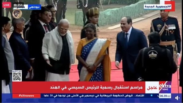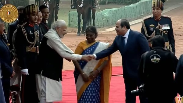 استقبال حافل للرئيس السيسي لدى وصوله نيودلهي للمشاركة في احتفالات الهند بيوم الجمهورية