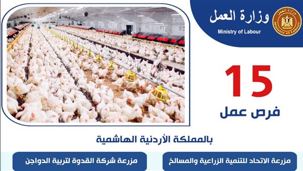 وزارة العمل: 15 فرصة عمل جديدة في الأردن بمجالات تربية الدواجن