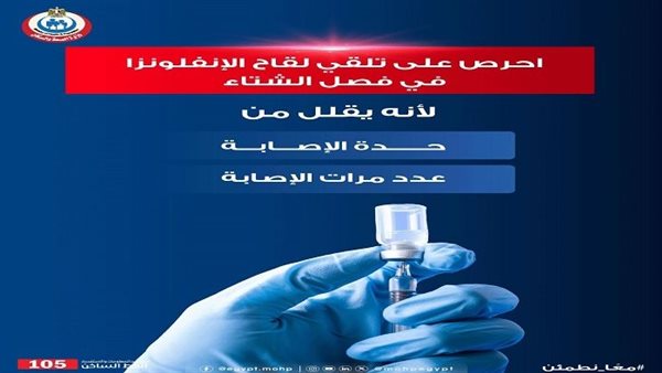 "الصحة" تنصح المواطنين بالحرص على تلقى لقاح الإنفلونزا في فصل الشتاء