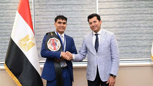 وزير الرياضة يلتقي بطل الكيك بوكس محمد راتب