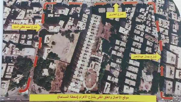 غلق جزئي لشارع الأهرام بسبب إنشاء محطتي مترو مدكور والطالبية