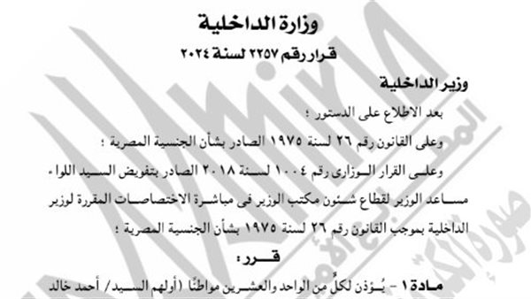 بالأسماء الجريدة الرسمية تنشر قرار رد الجنسية المصرية لـ21 شخصًا
