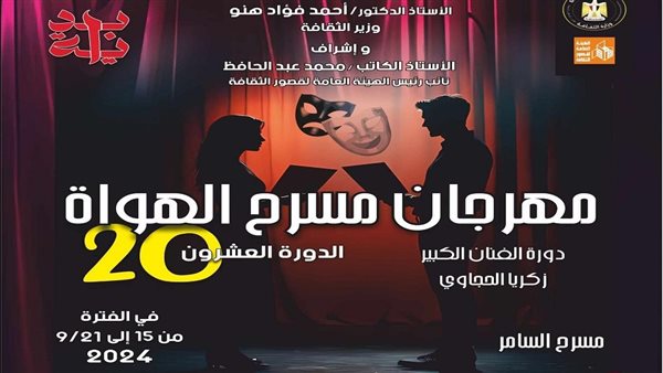 «قلب الكون» و«طرح حرير» على السامر في مهرجان مسرح الهواة الـ20
