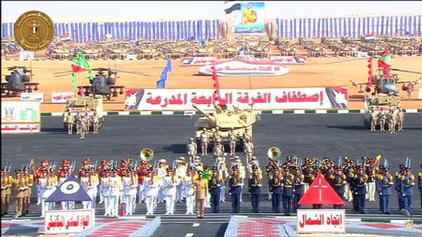 الرئيس السيسي يتفقد اصطفاف تفتيش حرب الفرقة الرابعة المدرعة في السويس