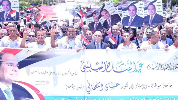 مئات الطلاب بجامعة سوهاج يحتفلون بذكرى ثورة 30 يونيو: كلنا معاك يا ريس