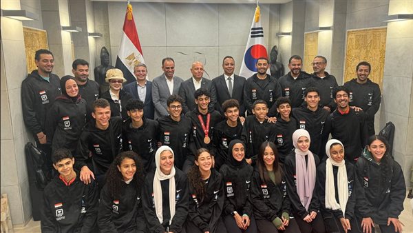 سفير مصر بكوريا الجنوبية يستقبل بعثة منتخب شباب التايكوندو بعد التألق في بطولة العالم