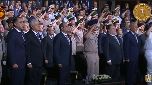 السيسي يشهد فيلمًا تسجيليًا عن رموز مصرية مضيئة بحفل تخرج الكليات العسكرية