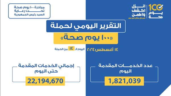 حملة 100 يوم صحة قدمت أكثر من 39 مليونًا و607 خدمات مجانية