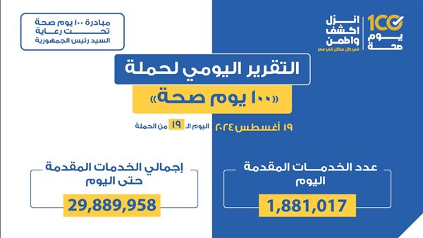 «100 يوم صحة» قدمت أكثر من 29 مليون خدمة مجانية خلال 19 يوما