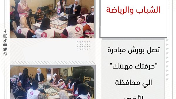 الشباب والرياضة تصل بورش مبادرة «حرفتك مهنتك» إلى محافظة الأقصر