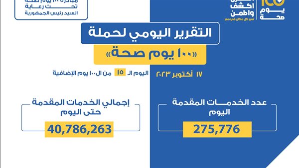حملة 100 يوم صحة تقدم أكثر من 44 مليون خدمة مجانية