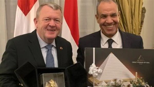 وزير الخارجية الدنماركي يهدي عبدالعاطي مجسمًا لأهرامات الجيزة