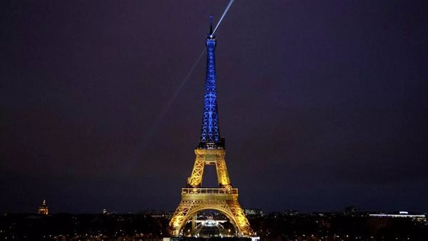 إضاءة برج إيفل بألوان علم أوكرانيا بمناسبة ذكرى بدء الحرب الروسية