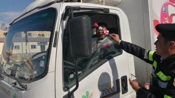 احتفالا بعيد الشرطة الـ73.. المرور يوزع الورد والشيكولاتة على قائدي السيارات