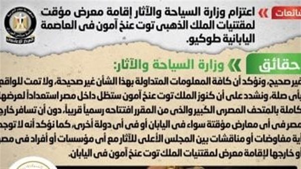 الحكومة تنفي إقامة معرض مؤقت لمقتنيات الملك الذهبي توت عنخ آمون في طوكيو