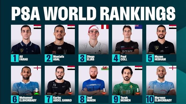 علي فرج ونور الشربيني يحافظان على صدارة التصنيف العالمي للإسكواش
