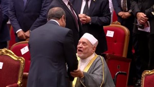 الرئيس السيسي يقبل رأس الدكتور أحمد عمر هاشم خلال احتفالية المولد النبوي