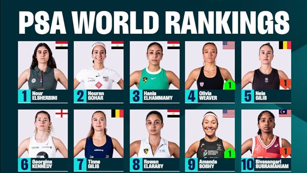 نور الشربيني تواصل صدارة التصنيف العالمي للإسكواش