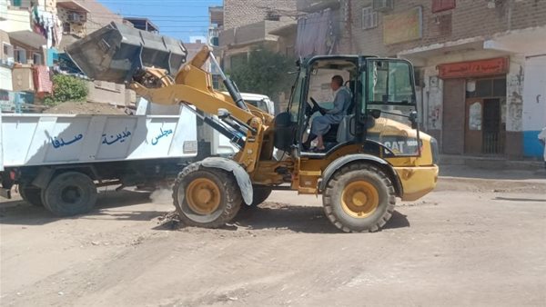رفع المخلفات وإزالة الأتربة بشوارع مركز صدفا بأسيوط
