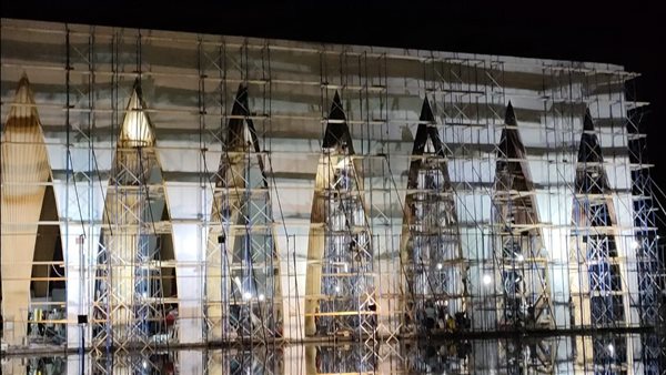 طلاء الأجزاء المحترقة لمكان حفل افتتاح مهرجان الجونة السينمائي