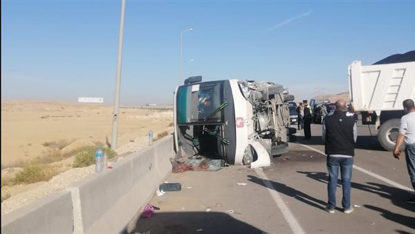 إصابة 25 عاملا في انقلاب أتوبيس على طريق العين السخنة