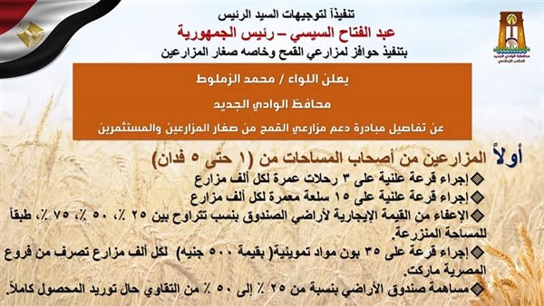 رحلات عمرة لمزارعي القمح الأكثر توريدا للمحصول في الوادي الجديد