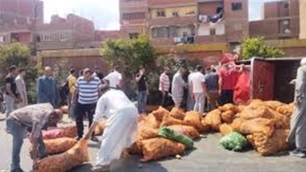 انقلاب سيارة ربع نقل محملة بالبطاطس علي الطريق الزراعي بالقليوبية