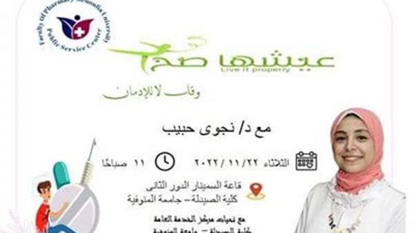 اليوم.. صيدلة المنوفية تنظم ندوة «عيشها صح» للتصدى لظاهرة الإدمان