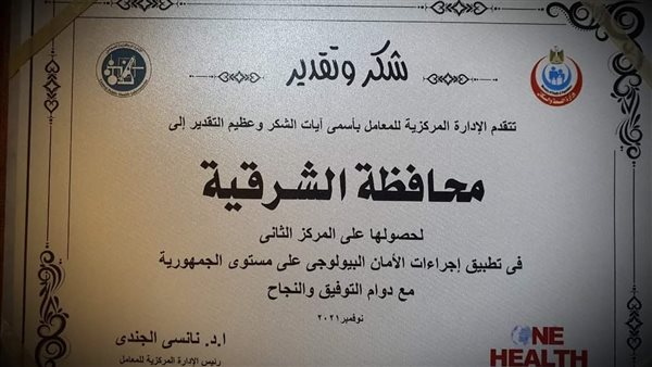 «معامل الشرقية» تفوز بالمركز الثاني على مستوى الجمهورية في تطبيق إجراءات الأمان البيولوجي