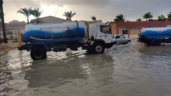 رفع حالة التأهب والتعامل مع النوة وسحب تجمعات المياه المتراكمة بمطروح