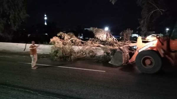 سقوط شجرة ضخمة بسبب شدة الرياح بالإسماعيلية